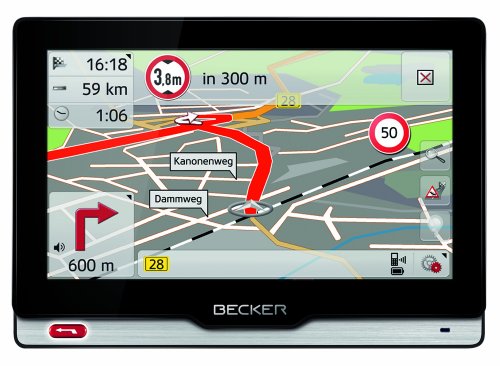 Becker revo.2 Navigationsgerät, 12,7cm (5'') Echtglas Bildschirm, 45 Länder, Truck & Camper Navigation Pro, lebenslange Kartenupdates und Premium-TMC, Anschluss für Rückfahrkamera, schwarz/silber